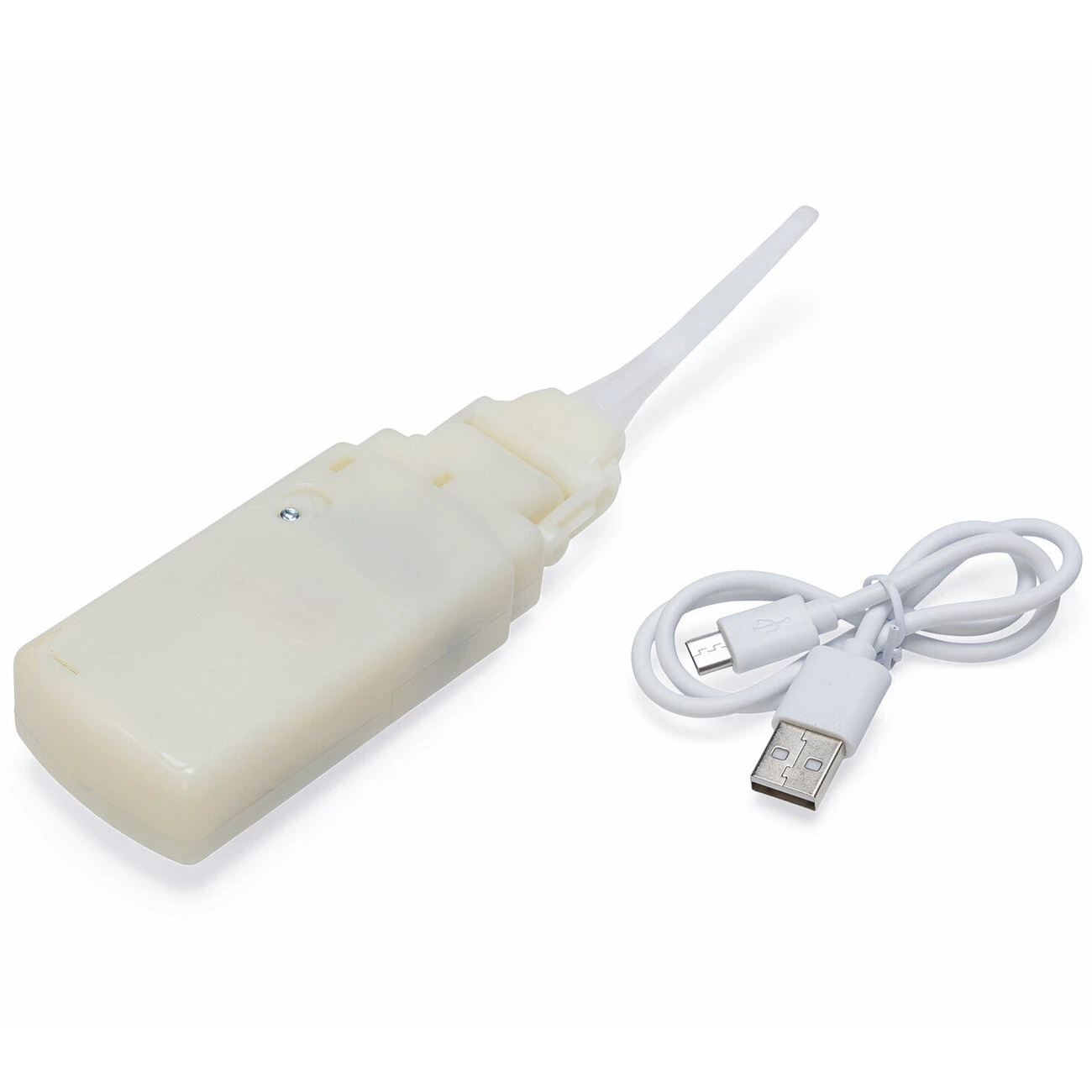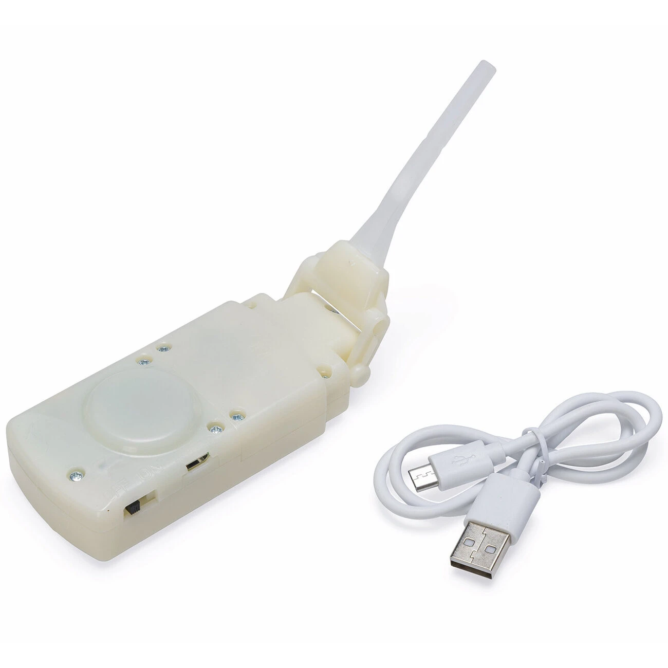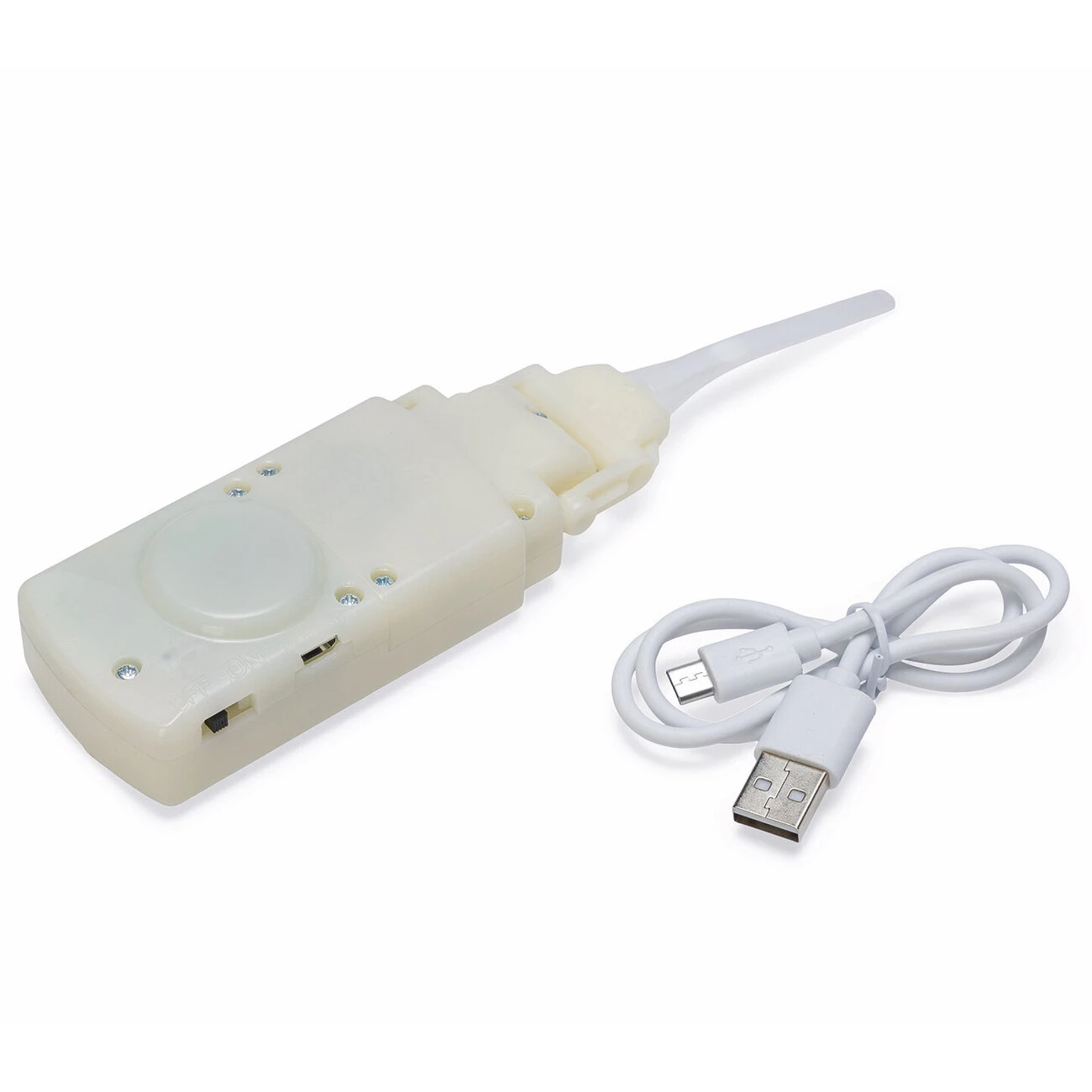 Durch den mitgelieferten USB-Anschluss kann er jederzeit aufgeladen werden. Der Mechanismus befindet sich im Bauch und ist ganz einfach über den Klettverschluss zu erreichen.