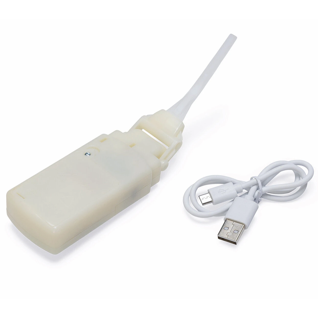 Für langen Spielspaß lässt sich der Wurm ganz unkompliziert durch den mitgelieferten USB-Anschluss aufladen. Der Mechanismus befindet sich im Bauch, welcher ganz einfach über den Klettverschluss zu öffnen ist.