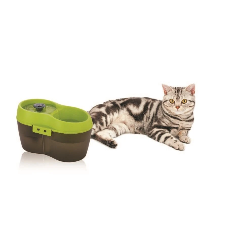 Der Katzentrinkbrunnen hat ein Fassungsvermögen von 2l – und sorgt so gerade im hektischen Alltag oder bei längerer Abwesenheit vom Besitzer die Bereitstellung von stetig frischem Wasser. Mittels Oberflächenskimmer und Aktivkohlefilter wird das Wasser mit Luft angereichert und werden zeitlich bedingte Verschmutzungen werden umfassend entfernt. Eine hochwertige Tauchpumpe sorgt für absolut leisen Betrieb und kann zur Reinigung leicht auseinandergenommen werden. Gehäuse in Lebensmittelqualität – ohne BPA.