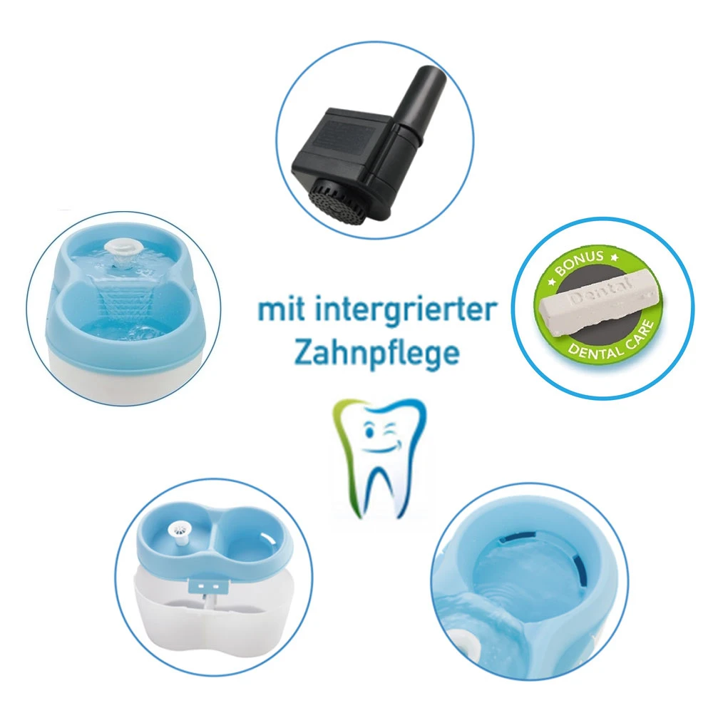 Immer frisches, leckeres und vor allen Dingen gesundes Wasser – ein Trinkbrunnen ist eine hervorragende Möglichkeit, die Samtpfote dazu zu bringen, mehr Wasser zu trinken und gleichzeitig etwas für die Zahnpflege zu tun! Die Hygiene von Zähnen und Maulhöhle beugt nicht nur Zahnerkrankungen vor, sondern wirkt sich damit auf die Gesundheit des gesamten Organismus aus. In den CatH2O-Trinkbrunnen können die Zahnpflegetaps leicht integriert werden. Diese schützen vor Entstehung von Zahnbelag und Zahnstein. Kontinuierliche Zahnpflege bei der täglichen Flüssigkeitszufuhr! Die Zahnpflegetabs sind geruchs- und geschmacksneutral.