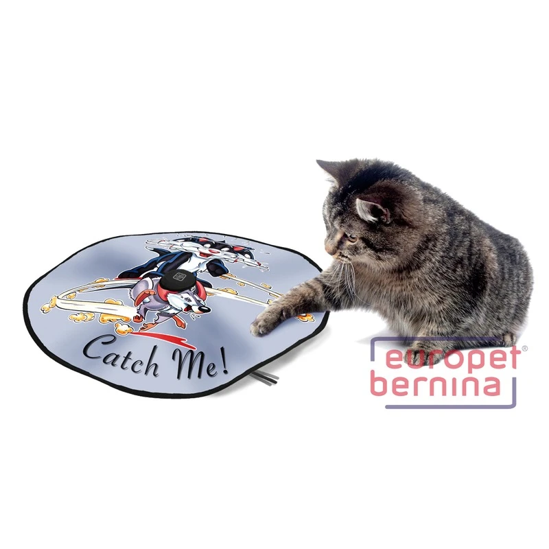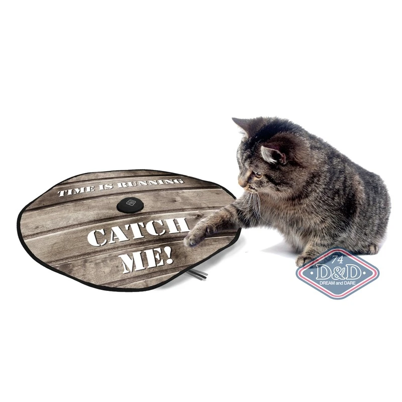 Elektrisches Katzenspielzeug – den Stoffkreis über den Motor legen, eine der 4 Stufen auf dem Mittelteil einstellen und schon dreht sich der Stab unter der Stoffscheibe variabel im Kreis. Katzen lieben dieses raschelige Versteckspiel!
