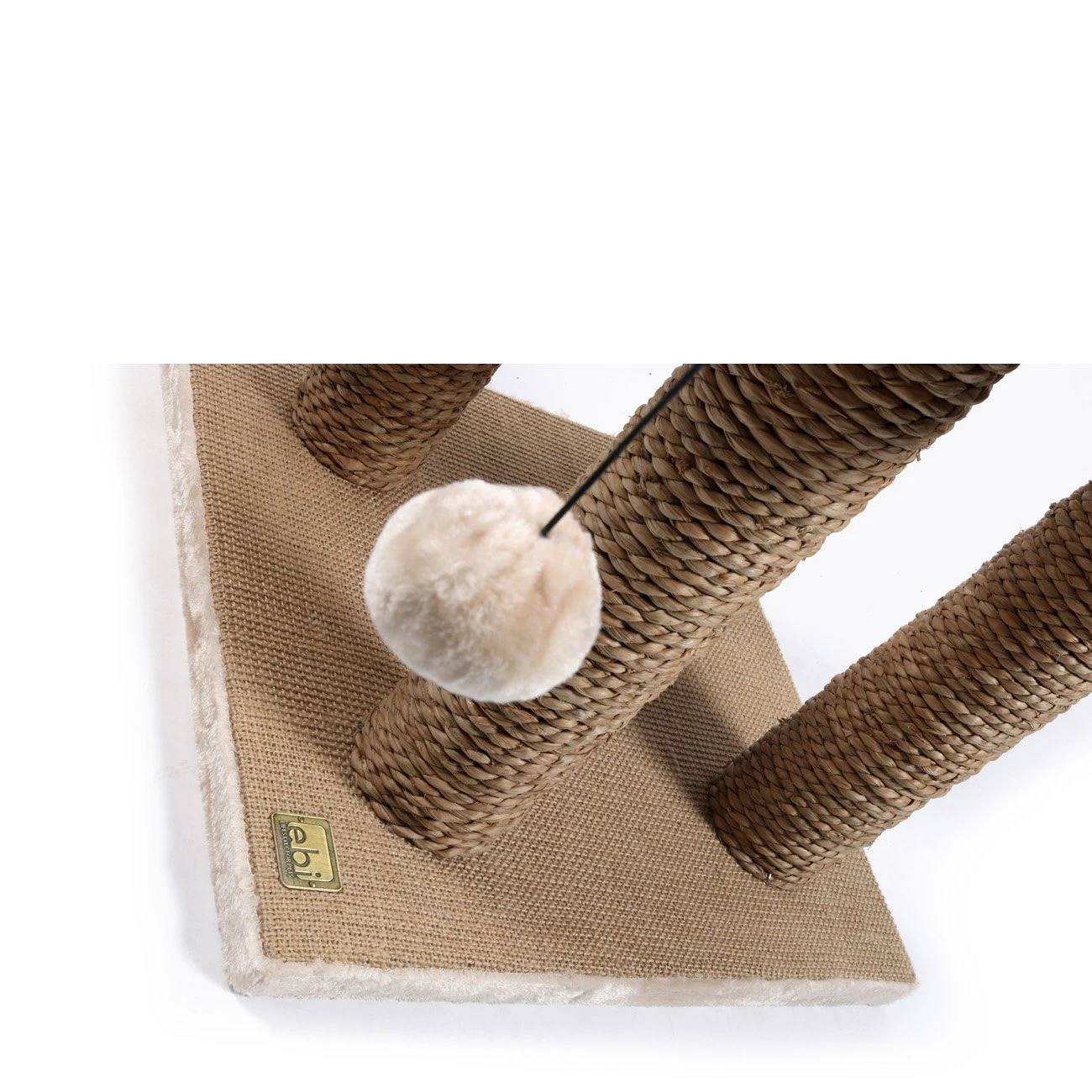 Am Kratzbaum Trend Curacao wird Ihre Katze durch seine 5 Ebenen mit allem, was dazu gehört, viel Spaß haben. Der Kratzbaum ist aus dem Werkstoff Wasserhyazinthe gefertigt – superstark und reißfest. Die 2 an diesem Kratzbaum baumelnden Spielzeuge laden Ihre Katze zum Herumtollen ein. Ihre Katze kann sich aber auch auf einem der weichen, Plüsch-Liegeplätze entspannen oder ein Nickerchen im Katzenhaus machen. Katzen brauchen ein solides Kratzmöbel, damit sie ihre Krallen pflegen und ihr Territorium abgrenzen können. Die Juteschnur rund um die Stämme ist eine natürliche und sehr robuste Faser, die der Katze hilft, die schuppige obere Schicht von ihren Krallen zu entfernen.