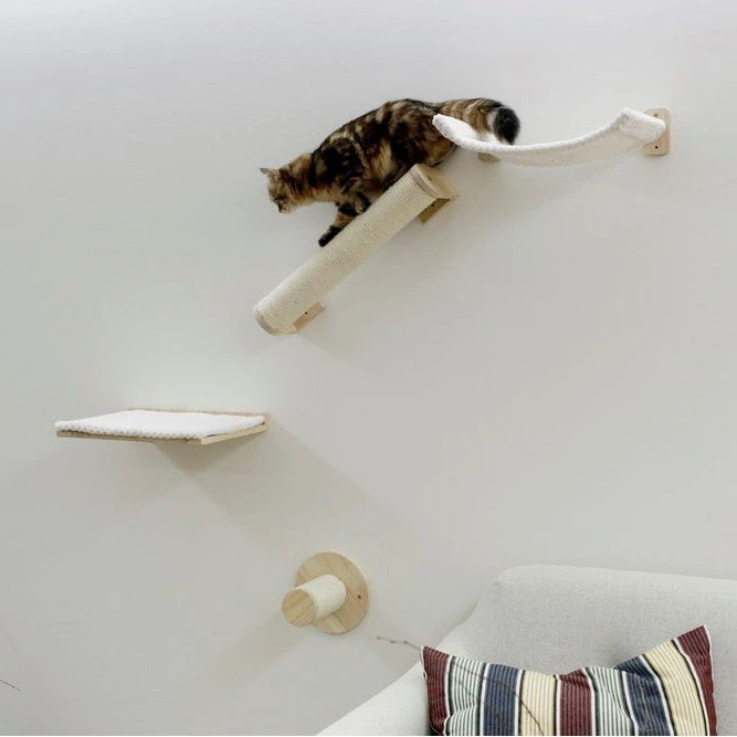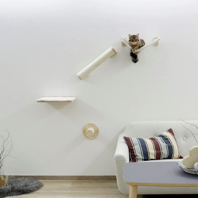 Viele Katzen kratzen gerne an den Wänden oder springen an ihnen hoch, was häufig zu starken Abnutzungsspuren führt. Wenn sie die Wand so lieben, wieso dieses Potenzial nicht einfach nutzen? Die Kletterwand Alps von Kerbl ist der perfekte Kletter- und Spielplatz für die Wand, mit individueller Note. Vier Einzelteile lassen sich individuell anbringen und können aus jeder Wand ein Paradies machen. Ist die Katze oben angekommen, kann sie sich in der gemütlichen Hängematte ausruhen oder aus erhobener Position seinen Menschen beobachten. Dieser Kletterspaß ist für jedes Zimmer ein Gewinn!
