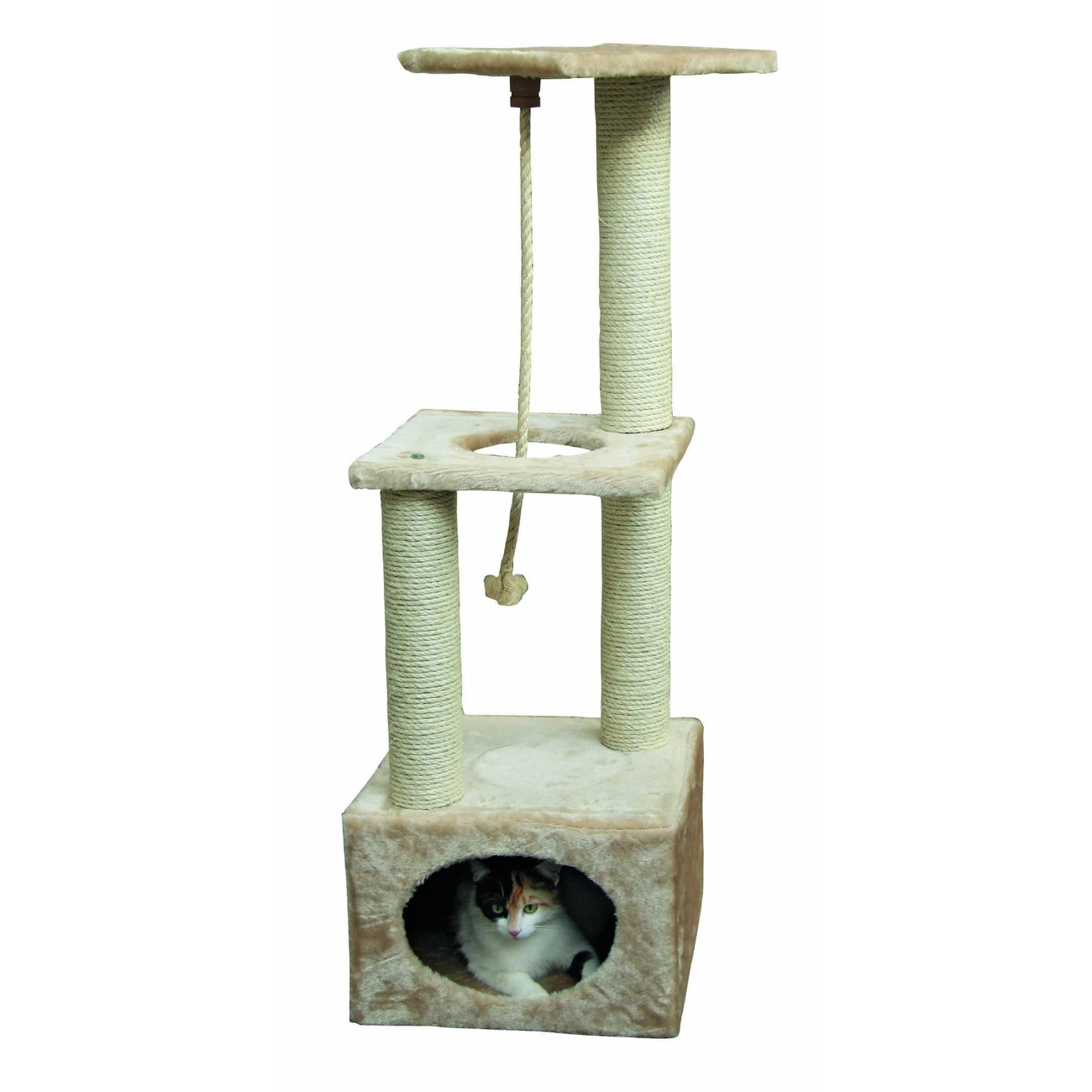 Der Kratzbaum Platin Pro von KERBL bietet ausreichend Abwechslung und Spielmöglichkeit für Ihren Stubentiger. Platzsparend ist er obendrein. Auch die Krallenpflege kommt nicht zu kurz und die Siesta lässt sich bequem in der Kuschelhöhle halten.