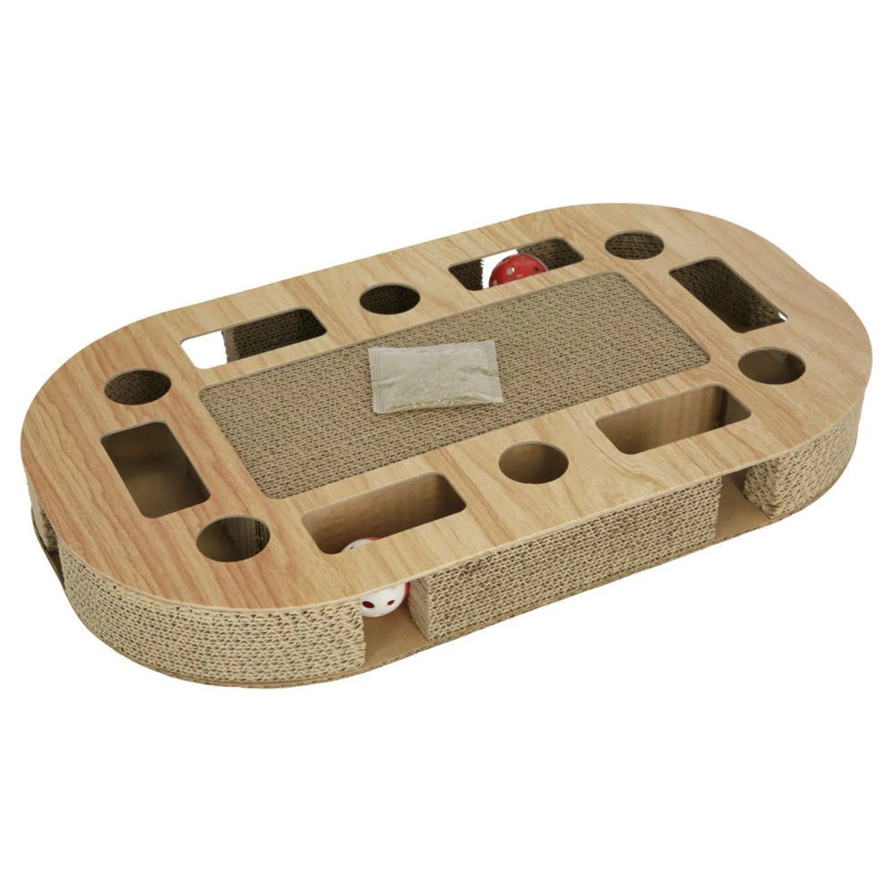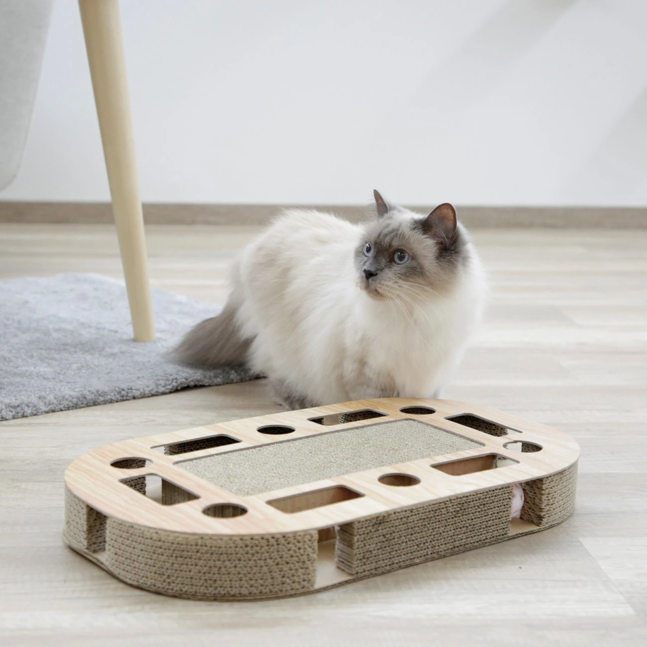 Katzen müssen ihre Krallen regelmäßig pflegen. Damit sie dies nicht an Möbeln oder Wänden tun, empfehlen sich verschiedene Spielzeuge für zu Hause. Das Ovalo Kratzbrett von Kerbl ist genau das: Spielzeug und Krallenpflege in einem. Die kleinen Kunststoffbällchen mit Glöckchen animieren die Katze zum Spielen und einsetzen ihrer Krallen. Denn so pflegt die Katze ihre Krallen ohne es zu merken.