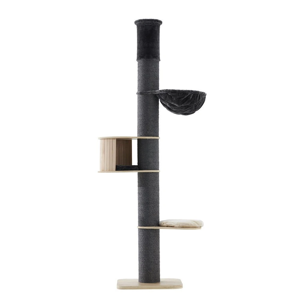 Durch die schmale Form ist der Kratzbaum HALIM deckenhoch von Nobby ideal für Haushalte, in denen nicht so viel Platz ist. Trotzdem bietet der Kratzbaum durch seine hohe Höhe viele Möglichkeiten zum Spielen, Kratzen und Toben. Der dicke, robuste Stamm mit Sisal unterstützt die Katze perfekt bei der Krallenpflege. Zum Verstecken, Schlafen und Wohlfühlen verfügt der Kratzbaum für Katzen über eine bequeme Liegemulde und ein gemütliches Versteck sowie einen gepolsterten Liegeplatz. Der Kratzbaum ist höhenverstellbar von 220 bis 250 cm und lässt sich somit optimal fixieren.