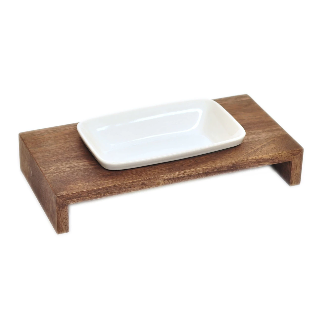 Die solide, schnörkellose Futterstation Meshidai Siam True für alle Katzen sind jetzt teak, schiefer und walnuss zu haben. Die Porzellanschale kann in der Spülmaschine gereinigt werden.