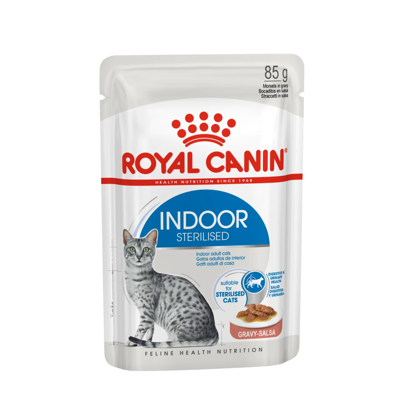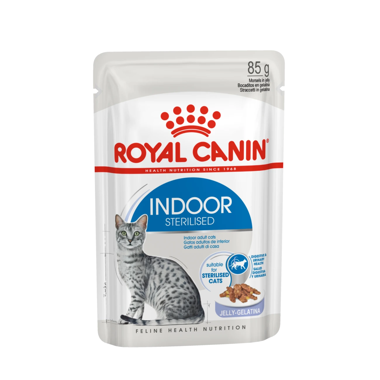 Royal Canin Indoor Sterilised Katzenfutter adult nass in Soße oder Gelee berücksichtigt das Optimale Nährstoffprofil, welches von Katzen instinktiv bevorzugt wird.