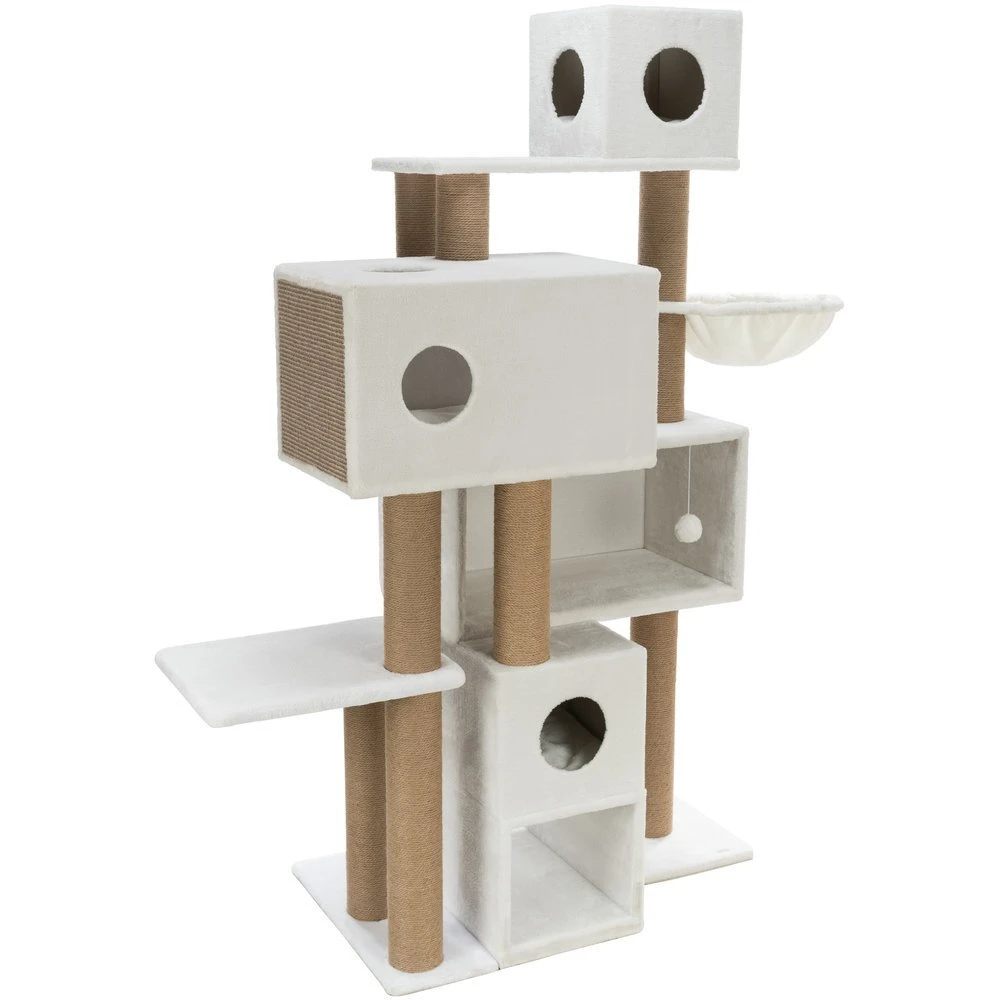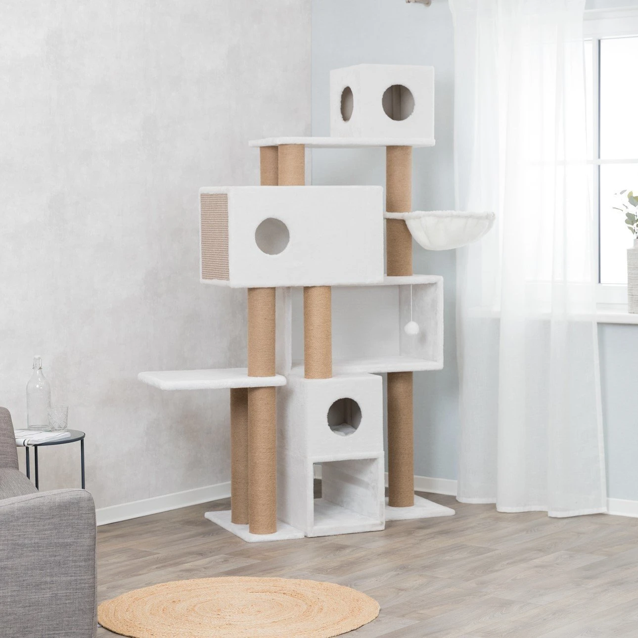Der große Kratzbaum überzeugt durch jede Menge Platz und viele Möglichkeiten zum Klettern und Schlafen. Auf mehreren Ebenen kann die Katze nach Lust und Laune klettern und spielen und sich so richtig austoben. Viele Sisalflächen sowie Jute sorgen dafür, dass die Katze ihre Krallen pflegen kann.
