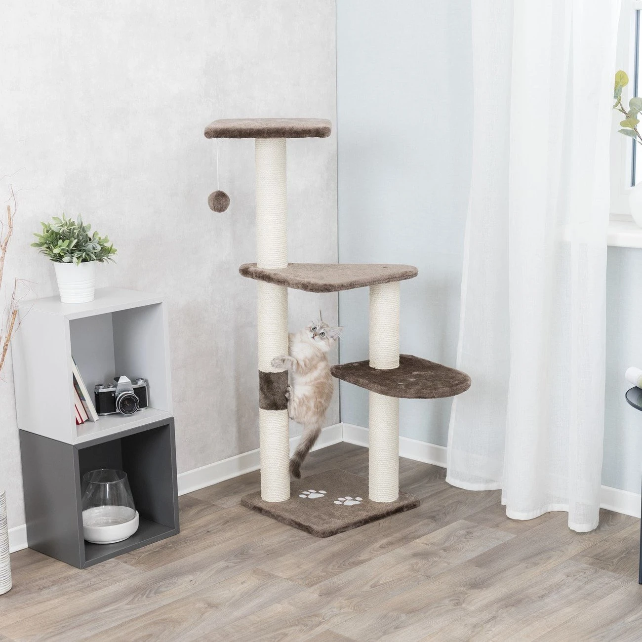 Der Kratzbaum Altea ist 117 cm hoch. Er enthält ein Spielzeug am Gummiband.
