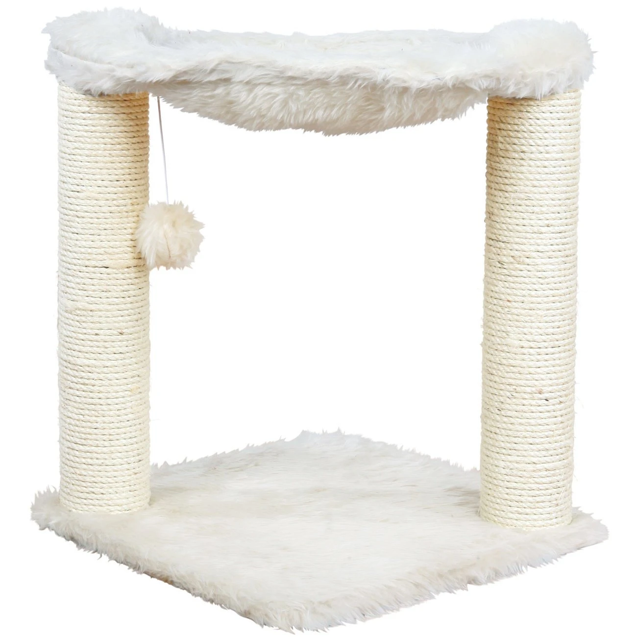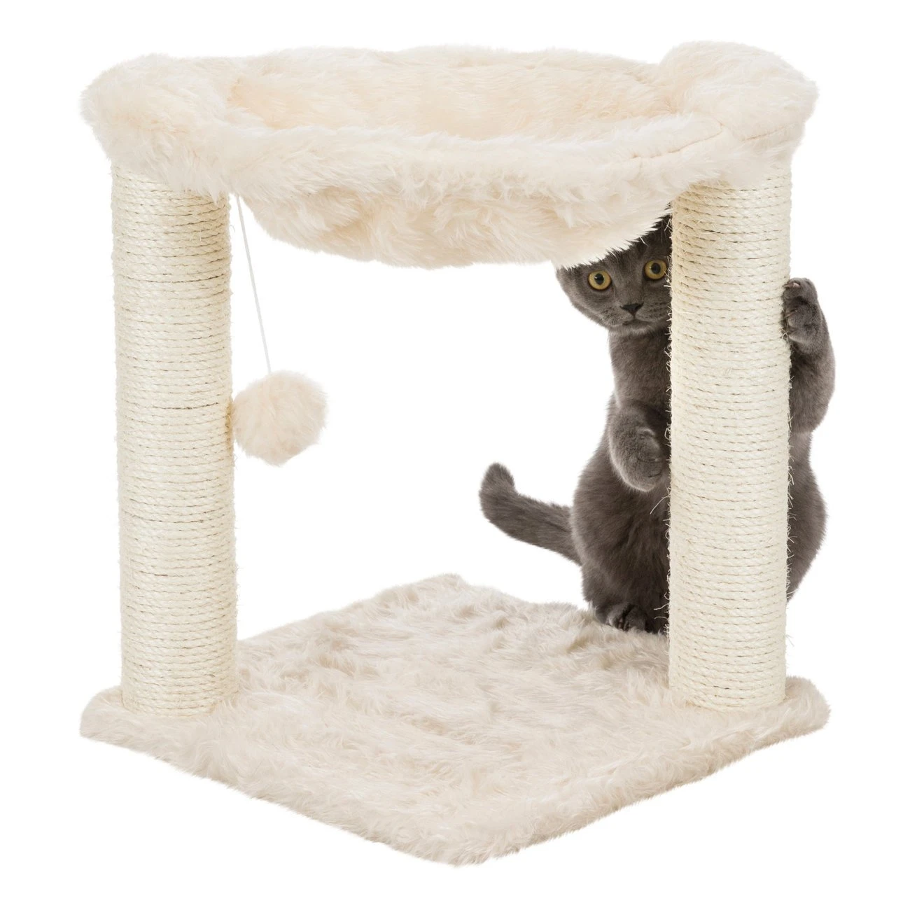 Der Kratzbaum Baza im Langhaar Plüsch Design hat folgende Bestandteile: