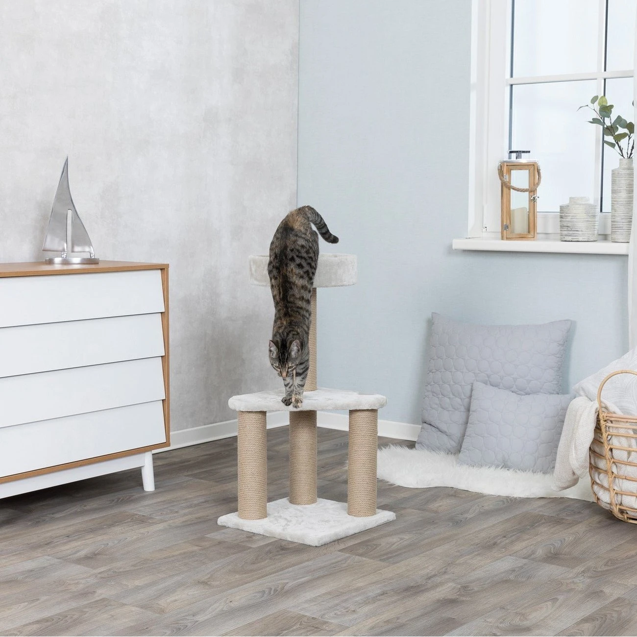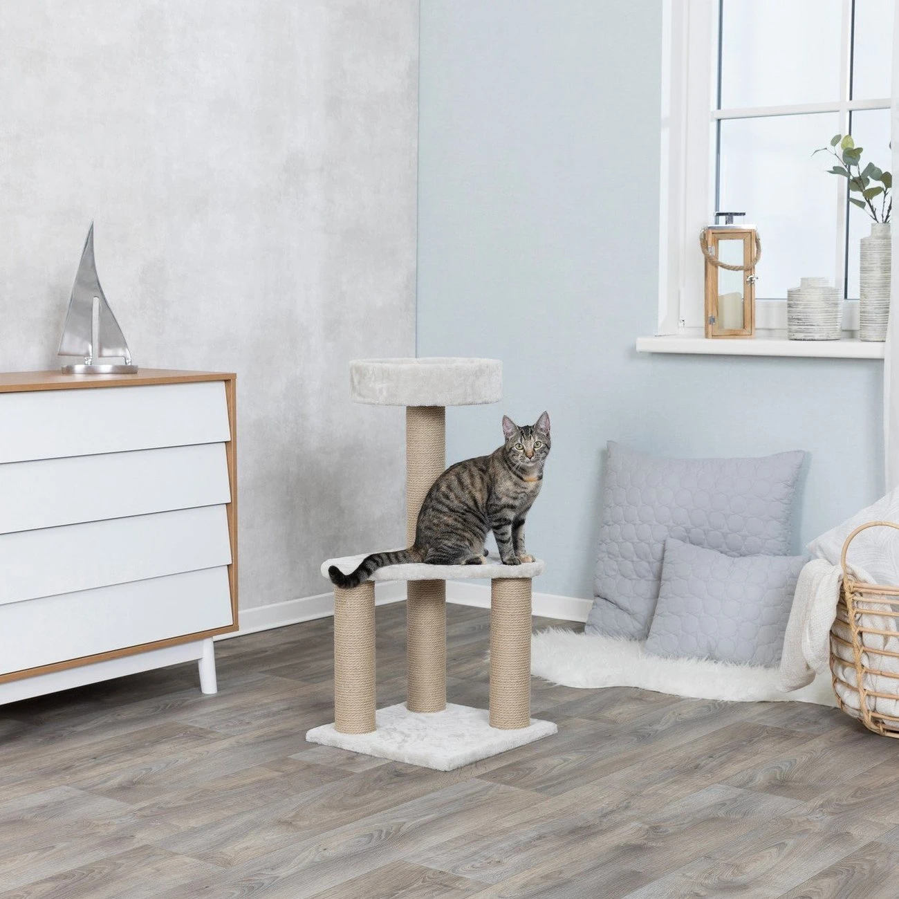 Der Trixie Kratzbaum Ivan hat einen weichen mit Plüsch-Bezug.